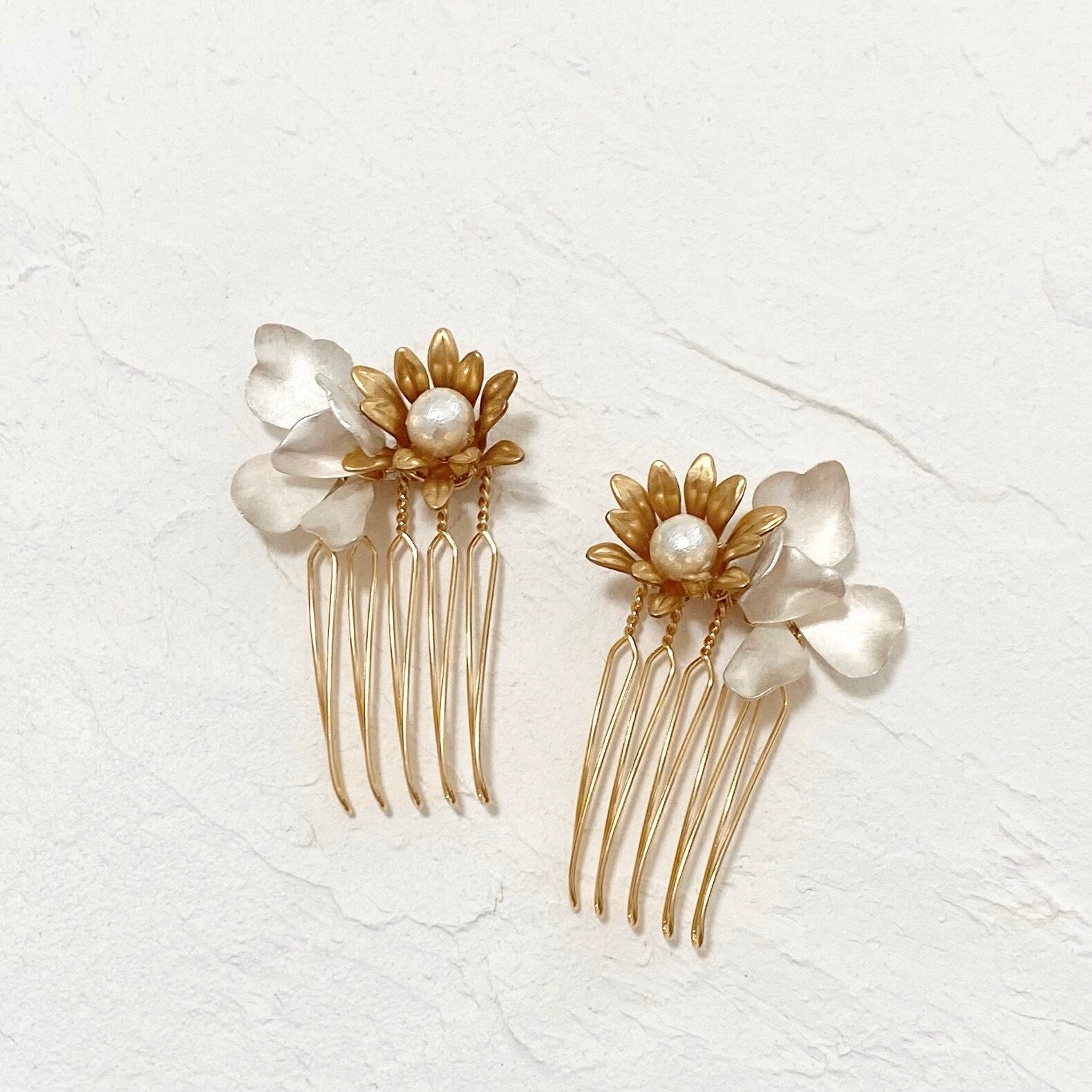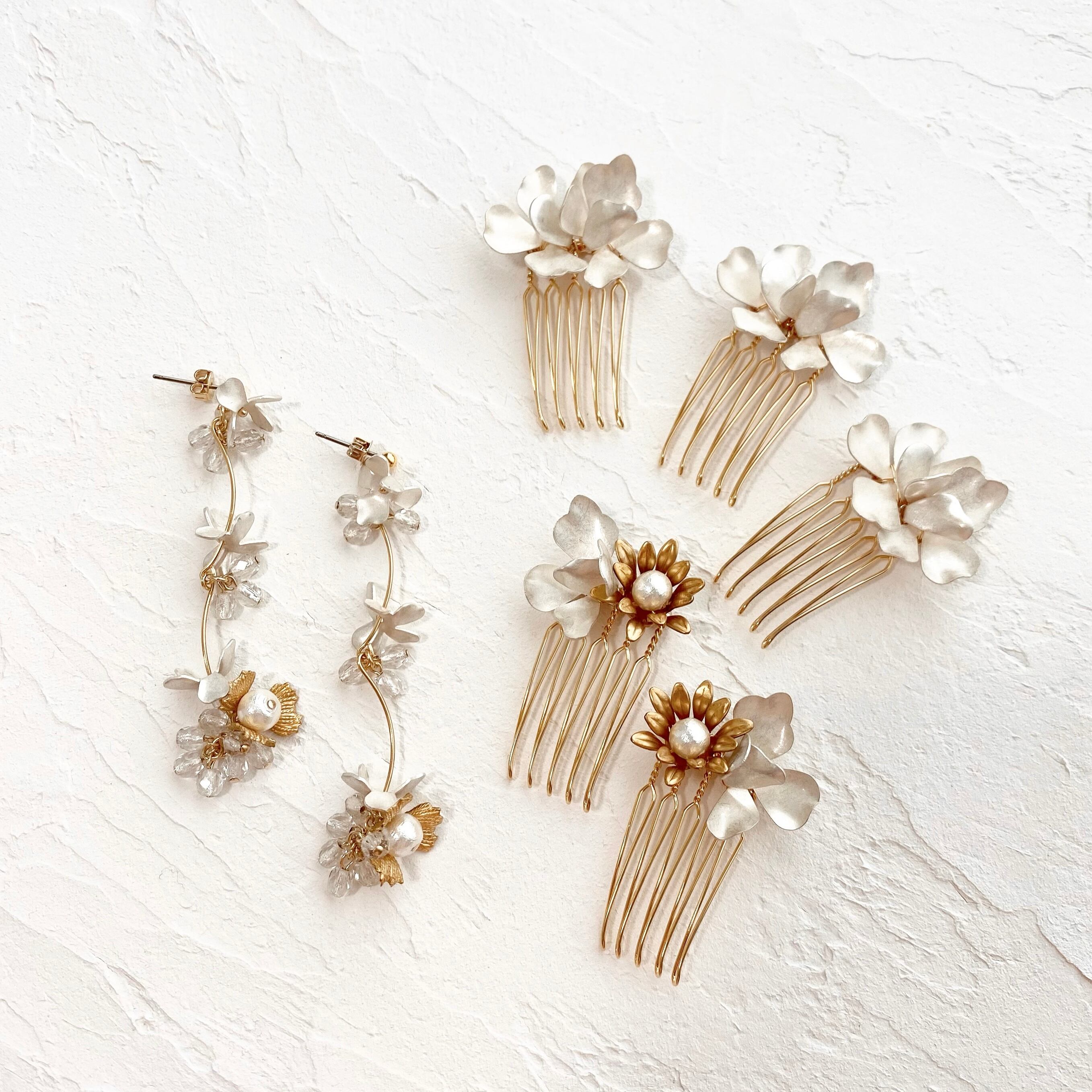 同じお花のシリーズでデザイン違いのヘアコームがございますので、一緒にご使用いただけます。