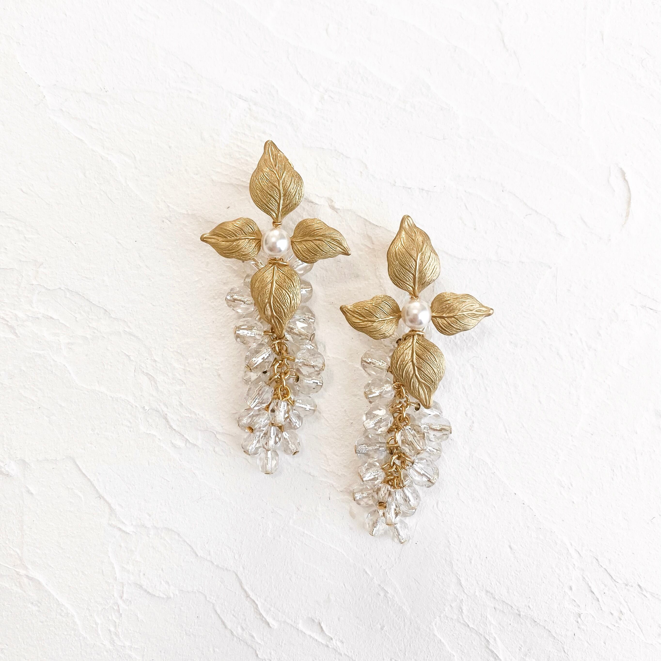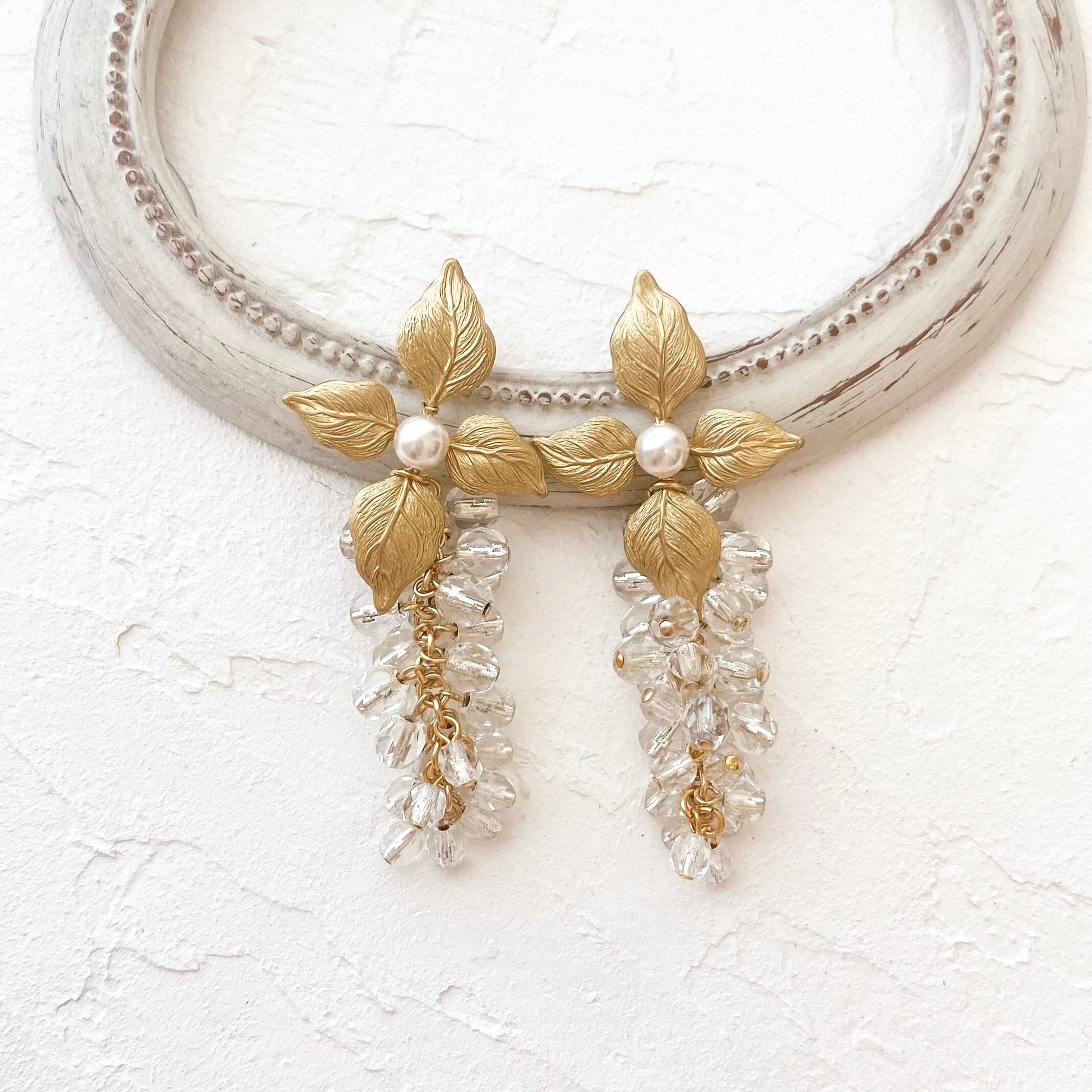 インポートのお花の真鍮(ブラス)パーツとチェコビーズを使用したピアス。