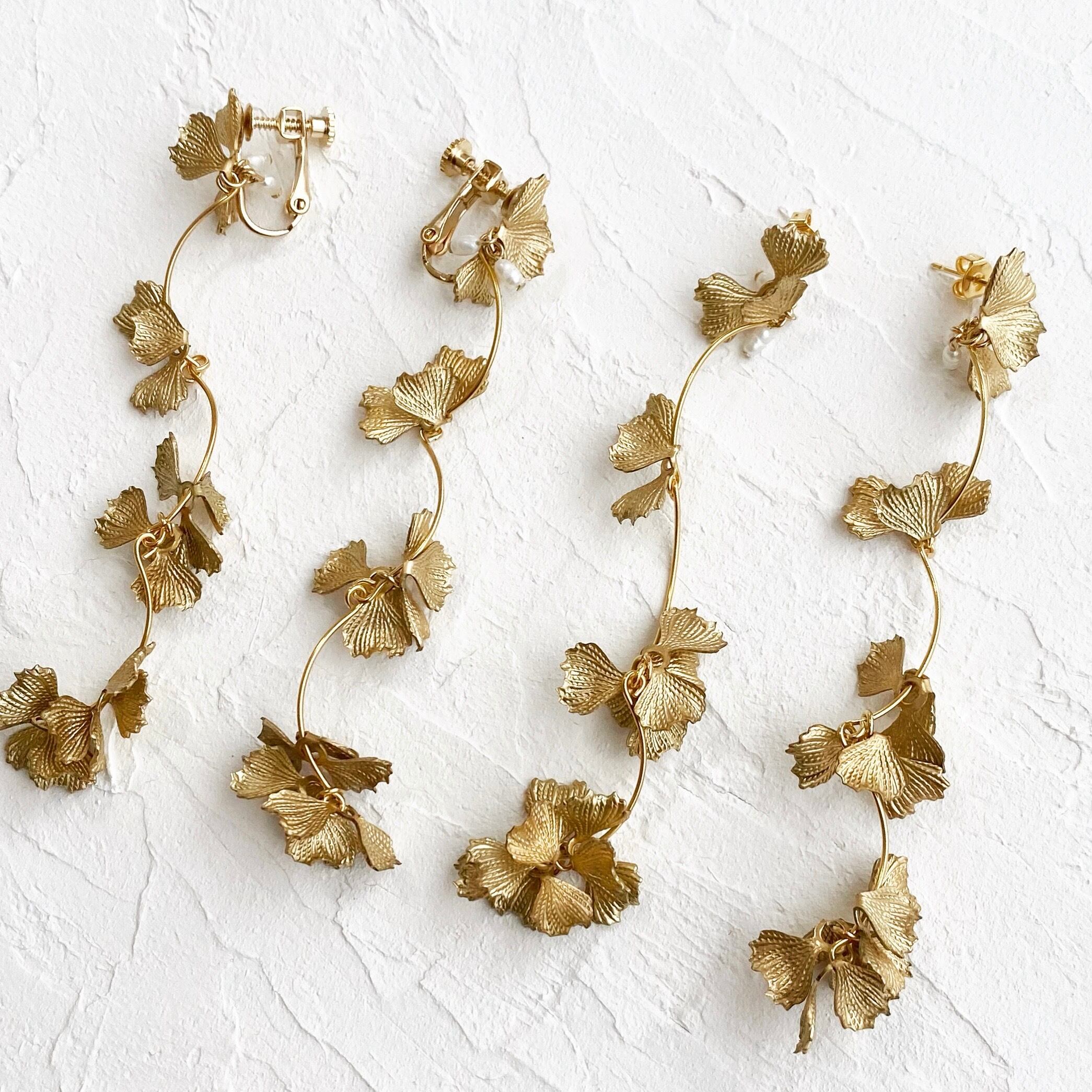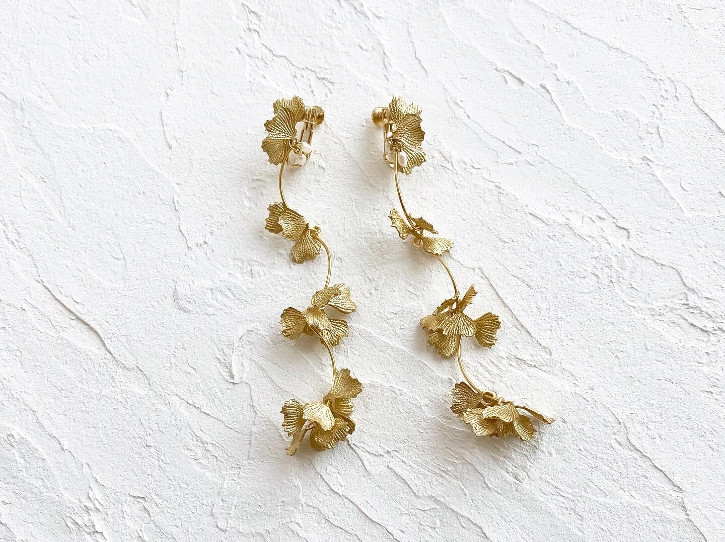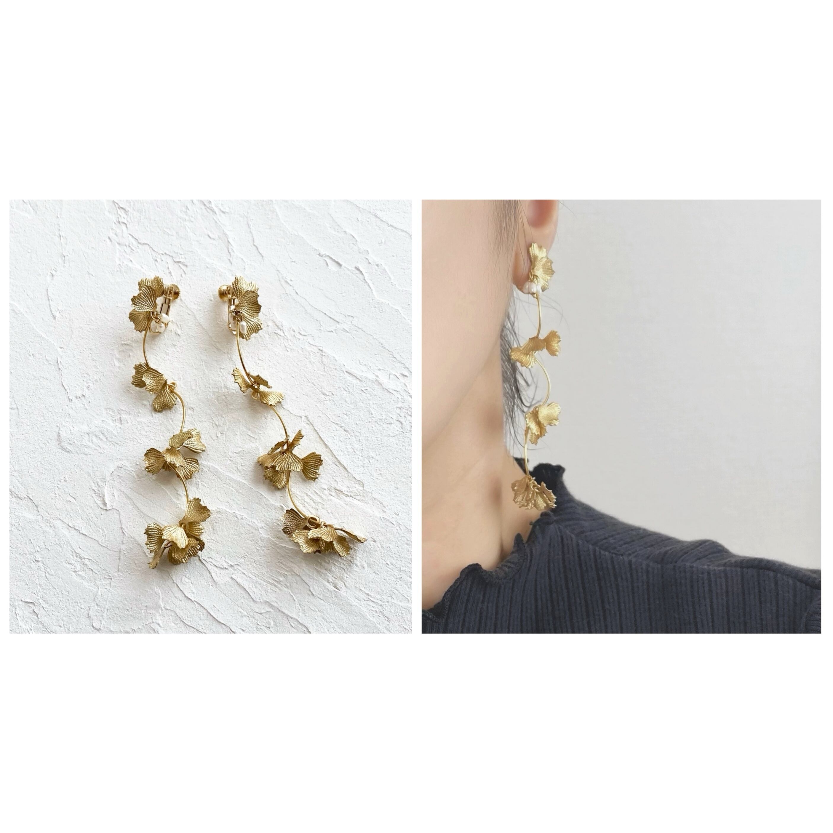 小さな3つの花びらの付いたお花のパーツをたくさん使用しています。