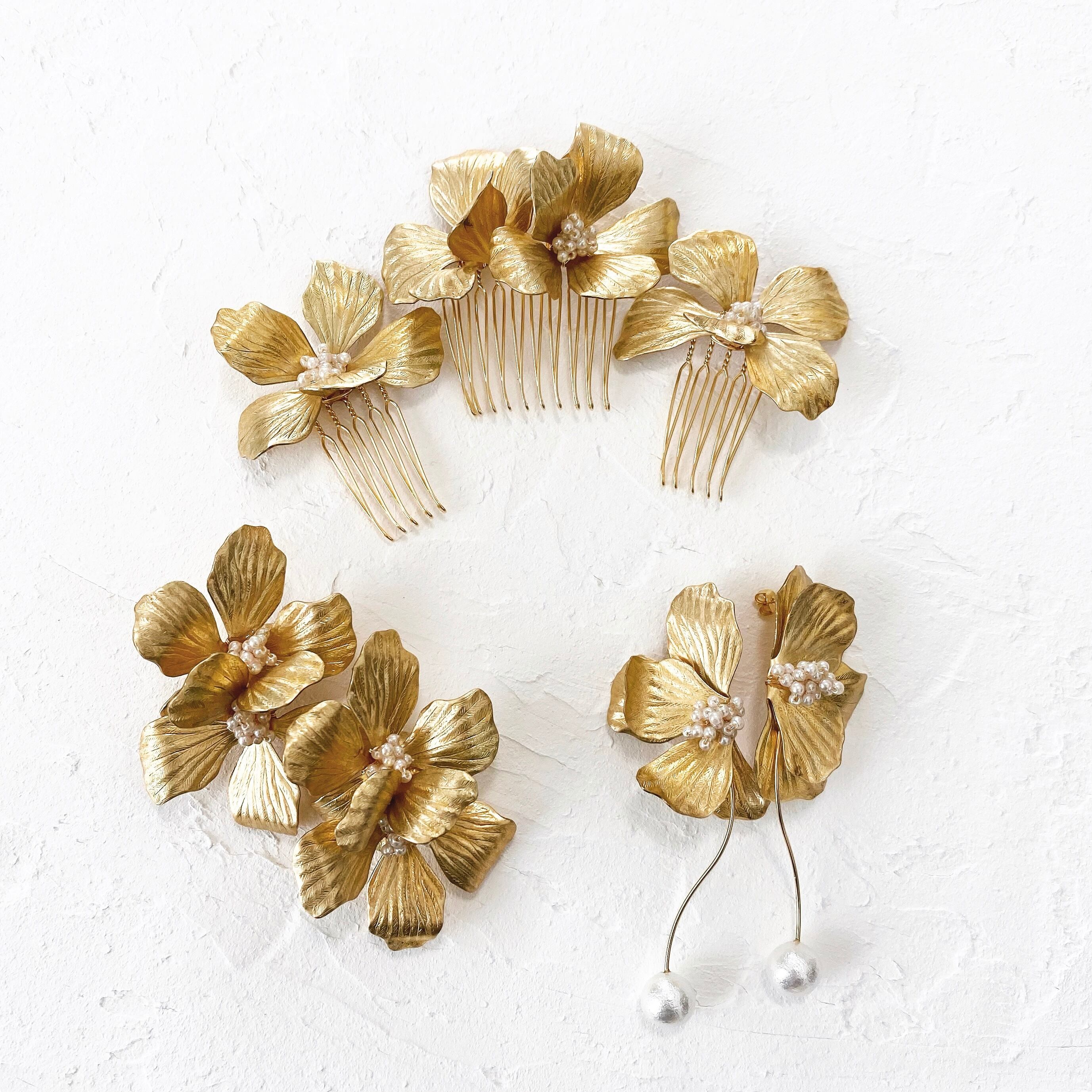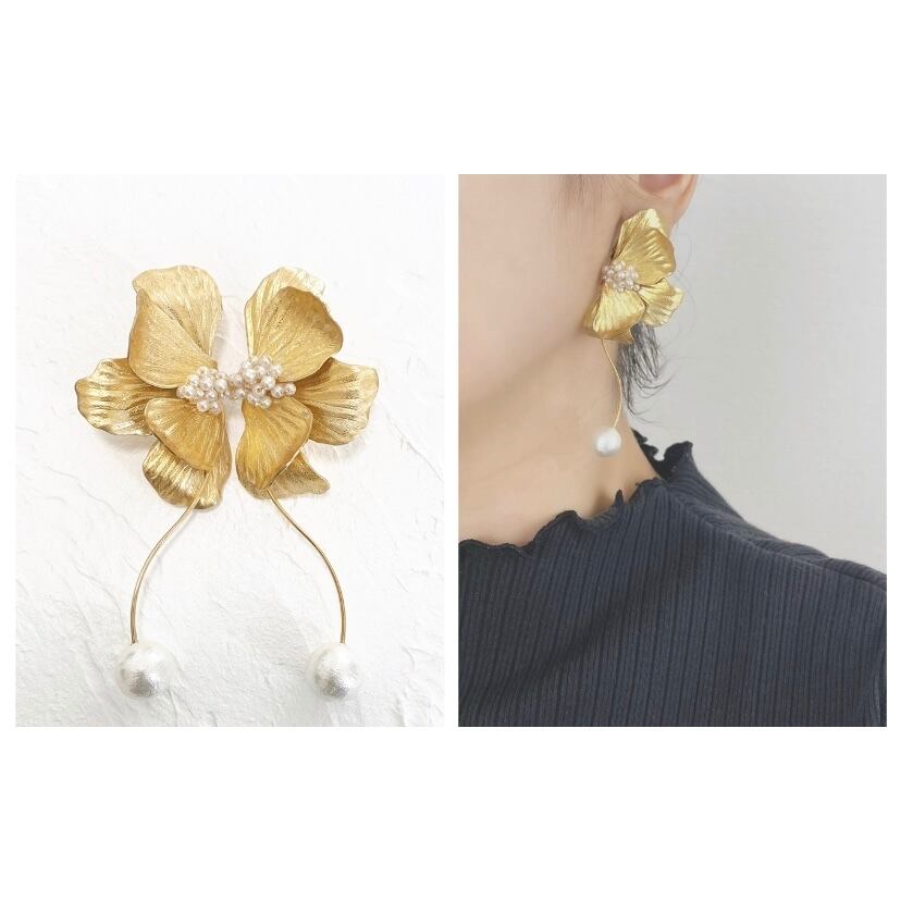 ゲラニウムのようなお花のインポートの真鍮(ブラス)パーツを使用しています。