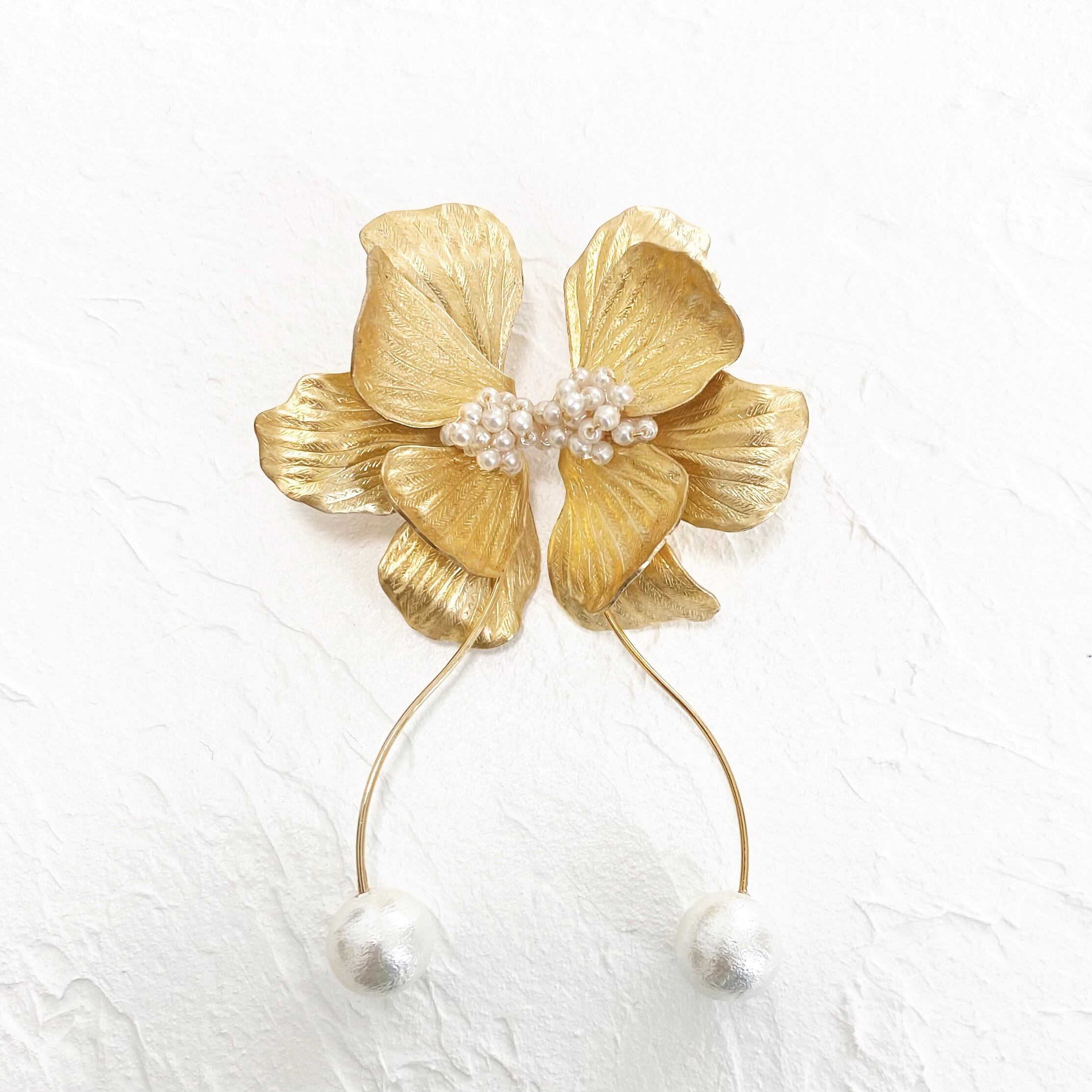 ウェーブパーツの先には軽いコットンパールを使用。