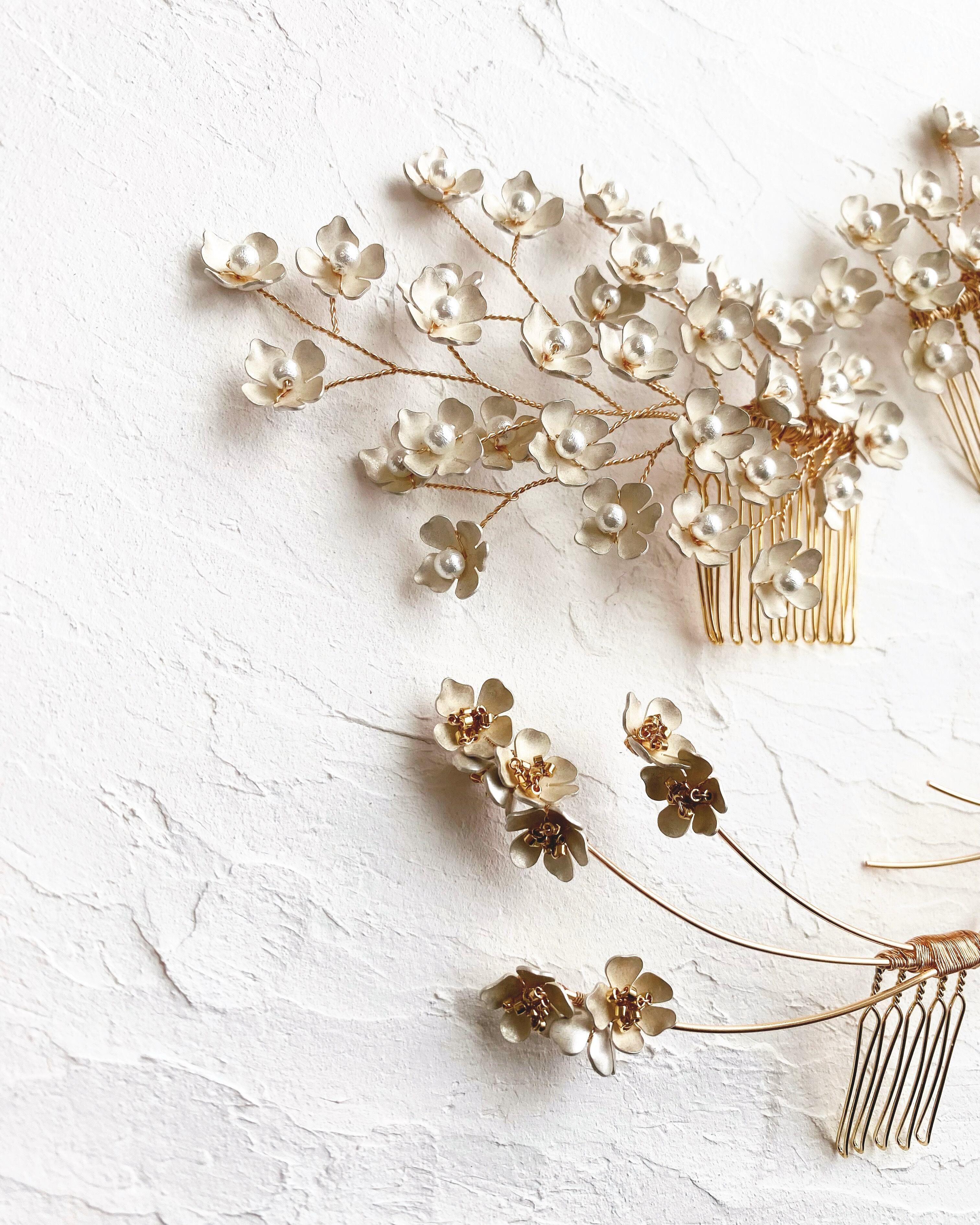 小さなお花がたくさん散らばった華やかでポイントとなヘアコームです。